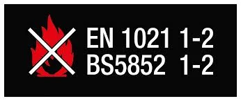 Materiales Ignífugos que cumple con la normativa europea y española de referencia. [EN 1021; BS 5852 Crib 5; UNE 23.727-90 M2; NFP 92 503 M2] |